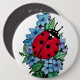 Vattenfärgad kute-ladybird med blå Vild-blommor Knapp