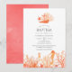 Färg 2019: levande korallabaptism inbjudan med koraller, stjärnfisk, sjöar och sjöar anpassade till dina händelsespecifikationer.