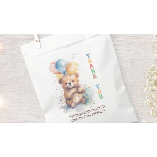 Vattenfärgad Nalle 1:a födelsedag Party Inbjudningar