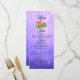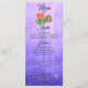 Orange blomstrar på en rustik lila-bakgrund och ljus bröllop-meny.