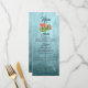 Orangen blåser upp katyrer på en rustik tealblått bakgrund och ljus bröllop-meny.
