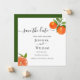 Elegant Spara datumkortet som innehåller citrusillustration för vattenfärgen orange. Perfekt för sommartid bröllop.