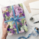 Fantastisk utformning av lila skägda iris-blommor som färgats i vattenfärger. Lämpligt vid alla tillfällen.