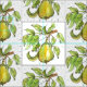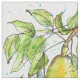 En fruktväv av elegant som dekorerats med ett gyllene päronmognadslager på ett blad av gren som skisserats med sepia bläck och vattenfärg i varma skuggor av grönt på en ljusreflekterad bakgrund.