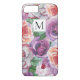 Vattenfärgen ro och monogram blommigt Fodral-Mate Barely Där iPhone 8/7 Fodral. Det visar mönster i vintage ro i lila och koral och ditt monogram i ett vitt ram.
