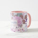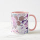 Vattenfärgad ro och vattendjup. Vita, rosa, lilaska blommor.