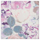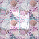 Vattenfärgad ro och vattendjup. Vita, rosa, lilaska blommor.