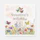 Flickans födelsedagsfest är utformad med vattenfärg, vita och färglösa vilda blommor med fjärilar.