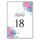 Med det här anpassadet kan du lägga till en ny blommigt till evenemanget med ett bordsnummer-kort med vattenfärgsblått och rosa vattenmagasin med motsvarande blommönster. Designat till trädgårdsbröllop i kostym, babyduschar, möhippor och vår eller sommar-firande, skapar det här bordsnumret ett sammanhängande och samordnat utseende över matbordet. Anpassa varje kort med ett bordsnummer så att det passar ditt sittande diagram. Blommigtarna för mjuka vattenfärger kompletterar ett stort antal teman och färg-paletter och skapar det enkelt att blanda med händelsemedaren. Oavsett om du planerar en romantisk utomhusceremoni eller ett party som inspirerats av blommigten, tillför den här designen en tankfull och artig detalj till varje bord.