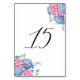 Vattenfärgad Rosa och blå Hydrangeas Bord 15 Bordsnummer