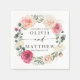 Vattenfärgad rosa ro. Blommigt trädgårdsbröllop Pappersservett