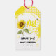 Vattenfärgad solrosa med fjärilar 1:a födelsedag presentetikett