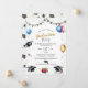 Fira speciella student i stil! Vattenfärgsobjekt som symboliserar studenten visas i roligtens studentfest-inbjudan. En guld och en svart banderoll spådomar ut "gratulerar grad", men du kan ändra det till spelar ingen roll du gillar. Studentmössor, diplom och ballonger dekorerar grund och delar av inbjudan med en subtil konfetti bakgrund att tillföra firande. Det omvända är en pantpapp och konetti mönster som ska matcha. Tillgängligt med matchande produkter.