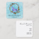 Ett boho stil-affärskort med en grafisk illustration som består av en varg med lila vattenfärg, i en klassisk hovling. Omgiven av en illustrerad krans av trä, kristaller, fjädrar och pärlor.