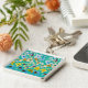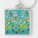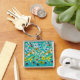 Vattenfärgad vimisk blåa blommor fyrkantig silverfärgad nyckelring