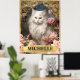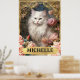 Vattenfärgad Vintage Vit Katt och Rosa ros Poster