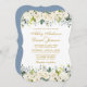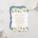 Vattenfärgad vit Blommigt Dusty Blue Elegant bröll Inbjudningar