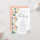 Vattenfärgade blommigtar, vita korallskript bröllo inbjudningar