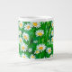 Mönster av vita daisy med gyllene gulter i Mugg med grasslig grönt