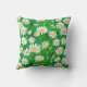 Dekorativ kudde i en vattenfärg mönster av vita daisy med gyllene gulter, med grasslig grönt som bakgrund