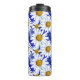 Tumlare i vattenfärg mönster av vita daisy med gyllene gulter, på en bakgrund i nyanser av denim blue