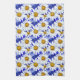 Teahandduk i vattenfärg mönster av vita daisy med gyllene gulter, på en bakgrund i nyanser av denim blue