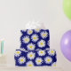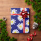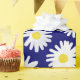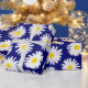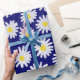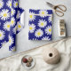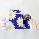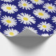 Ett upprepande mönster består av många handmålade daisy på en djup marin blå bakgrund.