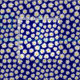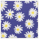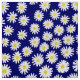 Ett upprepande mönster består av många handmålade daisy på en djup marin blå bakgrund.