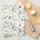 Vattenfärg, färglös, eukalyptus Löv mönster kökshandduk. Den brittiska konstnären Monika Howarth målade handmålning.