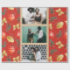 Den här sötterna helgdag har en mysigt helgdag av korall- och guldfärgade vattenfärgade Julgran-dekorationer och papprare mönster gult-grönenery på röd bakgrund, med en klassisk fotokollage som du kan anpassa med dina favoritfoton. Köp den här butiken för att samordna julhälsningskort och ytterligare festliga färg-alternativ!