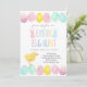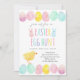 Denna bedårande inbjudan har handmålade vattenfärgade påskägg och en babykyckling.
