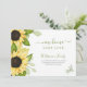 Elegant chic: Rustiska vattenfärgblommor nytt hem samma kärlek-flytta-annonskort med en vacker gult solblommor sommarbotaniskt bouquet med emerald och sage greenery foliage och ett trendig grönt-handskriftsskript.