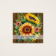 Vattenfärgade solrosor, Affärskort framsida av trä Fyrkantigt Visitkort