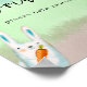 Könsneutrala inbjudningar till babydusch. En illustration av vattenfärgade trädsdjur: räv med blåbär i tassar, bär med hallon, häckande med päron, kanin med morot. Vattenfärgens bakgrund är flerfärgad.