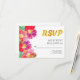 Vackra tropiska exotiska blommor som på ett bra sätt kombineras med ord "OSA" av FAUX guld står i centrum för detta bröllop OSA-kort för blommigt. Blommornas färg är fruktosens rosa, lila och grönt och ordens "OSA" verkar vara handskriven.