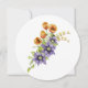 Rund bröllopsinbjudan med vattenfärgad orange- tulpanandning och lövning.
