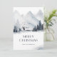 Julkort för bergsområden med anpassningsbar vattenfärg, med en snövinter med skogar och berg. Anpassa enkelt dessa vackra julkort för vattenfärg med din familj namn och text.