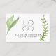 Vattenfärgsdokument lämnar botaniskt visitkortsmall med QR-kod och handritad blommigt- och vindruteteckning. Det här affärskortet är enkelt att anpassa genom att lägga till en egen logotyp. Skapa och lägg till din egen QR-kod för att enkelt styra klienter till webbplatsen.