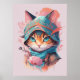 Vattenfärgat Cute Hooded Ninja Cat Poster
