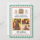 Den här fina och klassiska julkortet har vattenfärgat gingerbröd, flicka och hus med en grönt vattenfärg som läggs till gräns och en 3-fotomall. Anpassa med ditt namn/namn. Läser "SWEET CHRISTMAS önskemål från vårt hem till ditt" eller så kan du byta till ett annat citat. Baksidan har en röd, rödfärgad bakgrund och lyder: "För unto you föds i dag i staden David a Savior, som är Herren. Luke 2:11" - lämnat också som en mall för att anpassa sig med ett annat ordspråk.