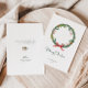 Gräs löv vattenfärgade julkrans med holly, gräs-koner och en röd båge. Anpassade med dina semesterhälsningar till dina kära.