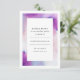 Den här moderna bröllopsinbjudan innehåller en vacker blandning av lila, blues och pinkar i en mjuk vattenfärgsdesign. Med ren typografi av contemporaryn förenar den perfekt konstnärlig elegans och en modern hand för din speciella dag.
