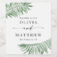 Vattenfärgat tropiskt botaniskt bröllop. Handflata Vinflaska Etikett