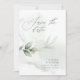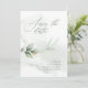 Eteriskt vattenfärgat blad och metallisk guld-effekt bröllop spara datum inbjudan. Med vackra vattenfärgsdetaljer. Den här moderna bröllopsinbjudan kommer säkert att sätta stil för din stora dag.