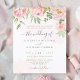 En elegant blommig bröllopsinbjudan med rosafärgade peonior och rosor i vattenfärg med modern handskriven kalligrafi. Denna vackra design är perfekt för vår- och sommarbröllop med ett romantiskt eller vintage tema.