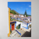 Vattenfärgsby i Medelhavet med vita hus och röda plattor med gatusyn i Portugal