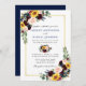 Vattenfärgen Blommigt Bröllop Blue Guld Ram Inbjudningar