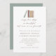 En charmerande bröllopsinbjudan perfekt för ett bokar eller bibliotek temat bröllop. Utformningen har en vattenfärgad illustration av bokar i neutralt jordton färg, och det populära citatet "varje artikel i kärlek är vacker, men vår favorit" i det moderna kalligrafteckensnittet. Anpassa med dina detaljer i mörken, brun. Baksidan är i fast dammig blå grönt.