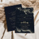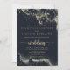 Den här kallelsen med guld stänk fram och bak är perfekt för ett bröllop. Utformningen har en mörk blått bakgrund med handmålad guld stänk. Spara papper genom att på baksidan av inbjudan ange mer information i stället för på ett separat visitkort.