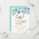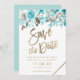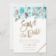 Guld-typografi och elegant-blommigt-vattenfärgturkos med blått vattenfärg och faux guld-geometrisk chic för rand spara datumet bröllop, perfekt för elegant, chic bröllop.